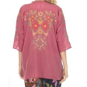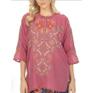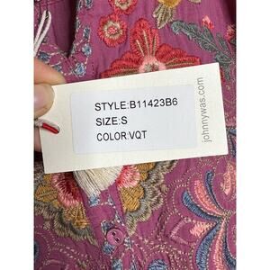 Johnny Was Biya Violet Irma Embroidered 3/4 Sleeve Blouse Small B11423B6 New