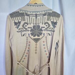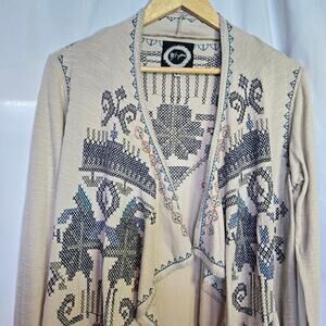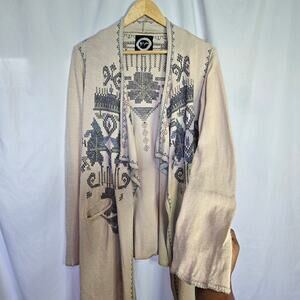 Johnny Was Biya Womens Embroidered Open Front Long Duster Size S Boho Western