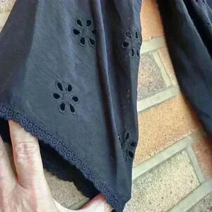 Johnny Was Black 3/4 Sleeve embroidered eyelet tunic style peasant blouse