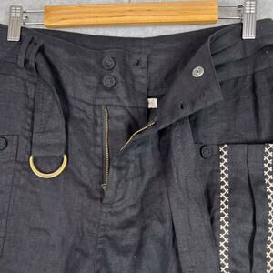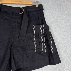 Johnny Was Black Embroidered Joni Belted Cargo Linen High Rise Short Size Small