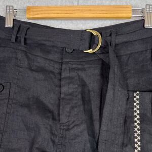Johnny Was Black Joni Belted Cargo Linen High Rise Short Size Small