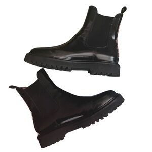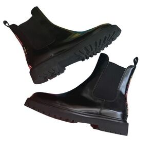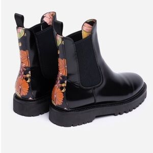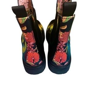 Stylish black ankle boots with vibrant floral accents. Durable sole. Perfect for any occasion.