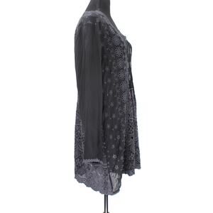 JOHNNY WAS BLACK EMBROIDERED FLORAL EYELET LONG SLEEVE SHEER TUNIC