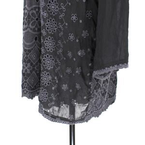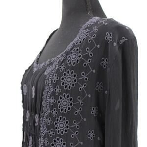 Johnny Was Black Floral Embroidered Eyelet Long Sleeve Mini Dress M Sheer Tunic