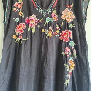 Johnny Was Black Floral Embroidered Tunic Size Small – Boho Chic