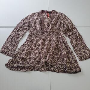 Johnny Was Blouse Womens Medium Purple Silk Floral Boho Peasant Top Tunic Long Sleeve