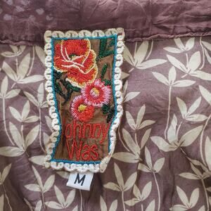 Johnny Was Blouse Womens Medium Silk Floral Boho Peasant Tunic Long Sleeve Top