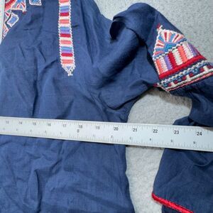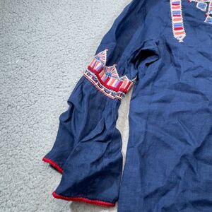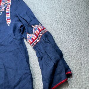 Johnny Was Blouse Womens Small Blue Embroidered Peasant Top Boho Ethnic Bib