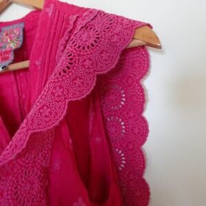 Johnny Was Blouse Womens Small Pink Lace Eyelet Pintuck V Neck Button Up Top