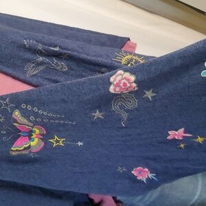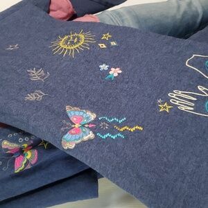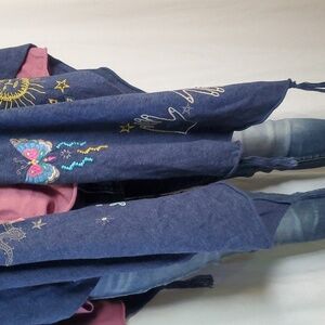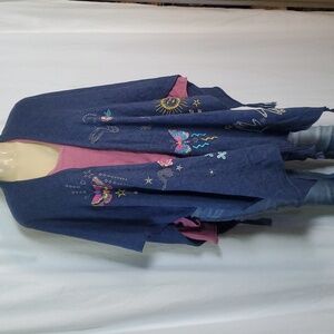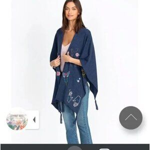 Johnny Was Blue Embroidered Butterflies Open Cape Cotton Cashmere Knit Shawl OS