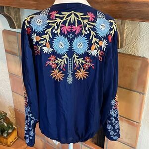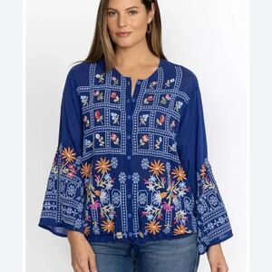 Johnny Was Blue EmbroideredWyatt Blouse, L