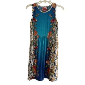 Johnny Was Blue Floral Dress Sleeveless Midi