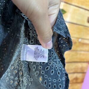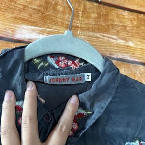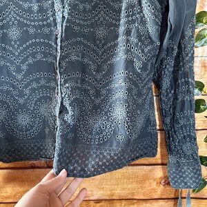 Johnny Was Blue Floral Embroidered With Eyelet Accent Button Down Shirt Size M