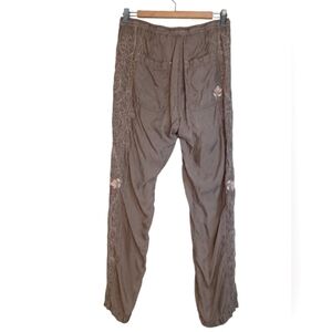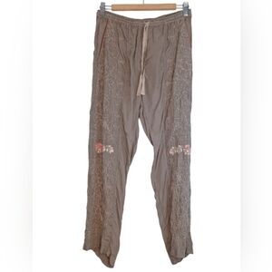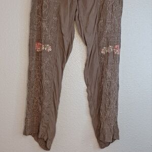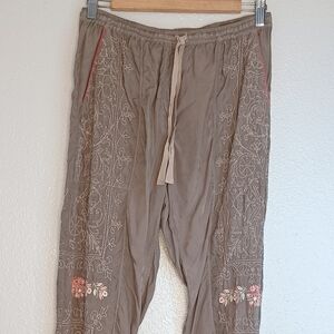 Johnny Was Boho Floral Embroidered Olive Green Joggers