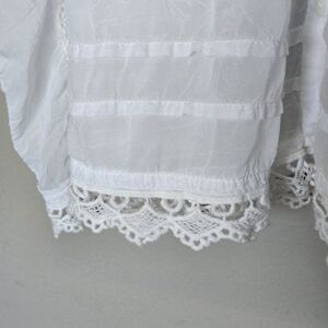 Johnny Was Boho White Eyelet Embroidered Lace Ruffle Button Down Tunic Blouse