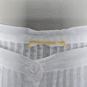 Johnny Was Boho White Eyelet Lace Ruffle Button Down Tunic Top Blouse in wonderful condition. Does have some small spots at the bodice, hard to see when wearing. See last 2 pics for details and ask any questions. Non-smoking, no pet home. Brand tag mostly cut but can still see it was Johnny Was. No size tag but measures to an approx size M, however, please see the below approx measurements.