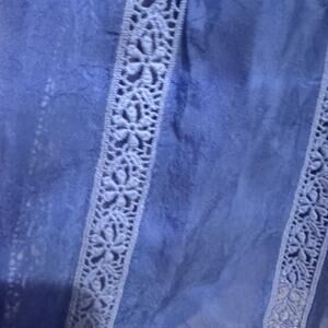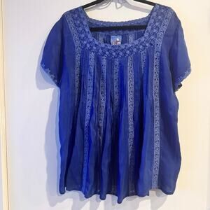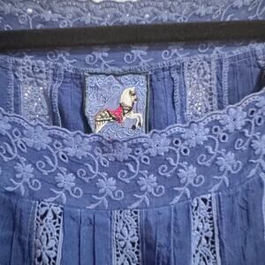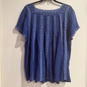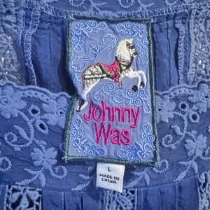 Johnny Was Brigita Blouse Blue Square Neck Eyelet Embroidered Short Sleeve Sz L