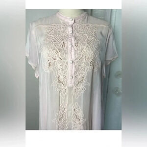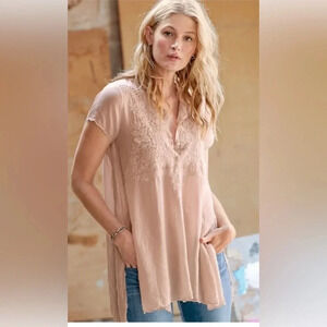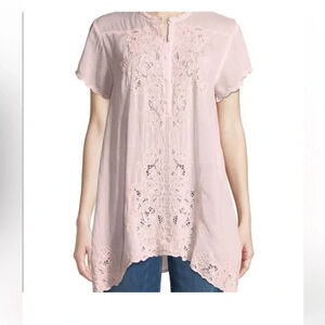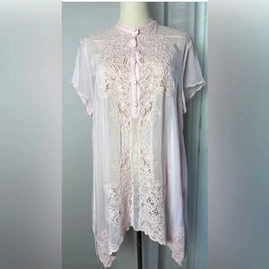 Johnny Was Britta Button-Front Embroidered Pink Tunic Size small