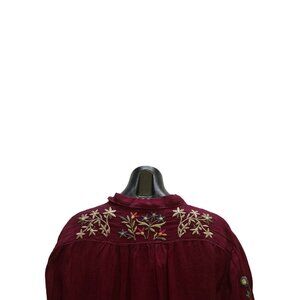 Johnny Was Burgundy Floral Embroidered Button-Up Blouse Size S