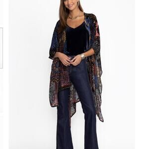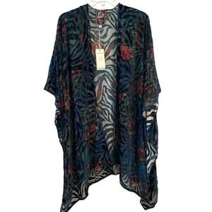 Johnny Was Burnout Silk Blend Velvet Floral Shawl Wrap OS