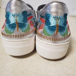Johnny Was Butterfly Embroidered Silver Metallic Sneaker Boat Loafer 'Vinny'