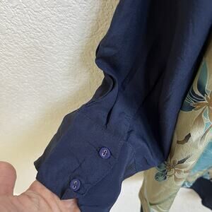 Johnny Was Button Down Shirt Sz 1X Navy Blue Floral Black Oversized Boho