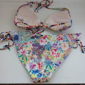 Johnny Was California LOCITA Print Bikini Bottom and Top w/ side tassels
