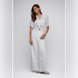 This Johnny Was blouse features a delicate flutter sleeve design in a crisp white color, perfect for adding a touch of elegance to any outfit. The notched collar and embellished details enhance its sophisticated style, making it a versatile addition to your wardrobe.