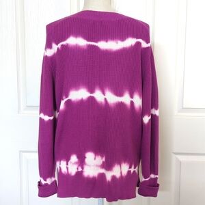 Johnny Was Cable Knit V-neck Tie Dye Purple Sweater