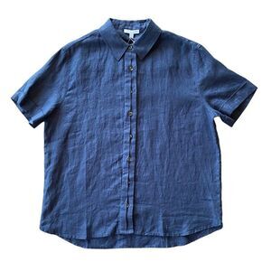 Johnny Was Calme Blue 100% Linen Cuff Sleeve Button Up Camp Shirt NWT Size Small