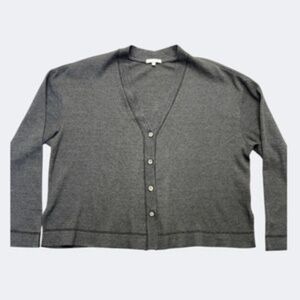 Johnny Was Calme Cardigan Women L Gray Waffle Knit Button Down V-neck Thermal