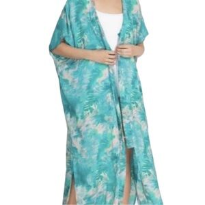 Johnny Was Calme Dress V-Neck Kaftan Maxi Turquoise Tie Dye Size Small / Medium