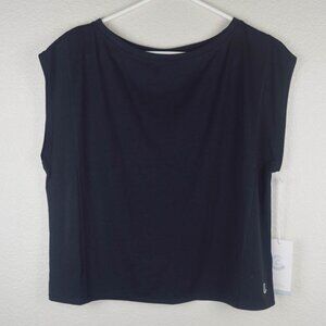 Johnny Was Calme Women's Black Boxy Muscle Tee Tank Top Open Keyhole Back - Size M