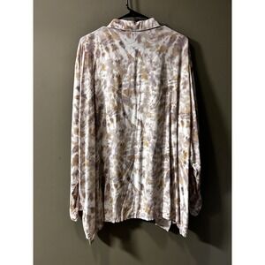 Johnny Was Calme Womens Oversized Button Up Rayon Blouse Tan Cream Floral Sz XL