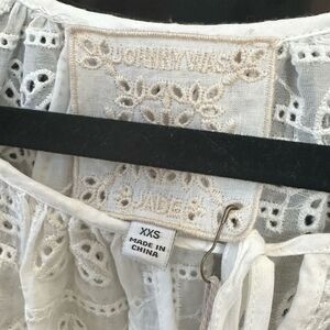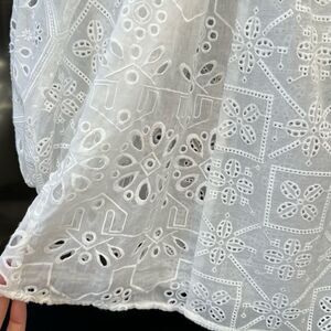 Johnny Was Castillo Eyelet Embroidered Top Blouse White Semi-Sheer, Size XXS