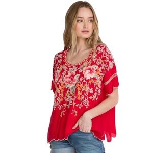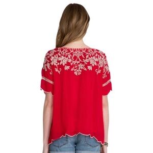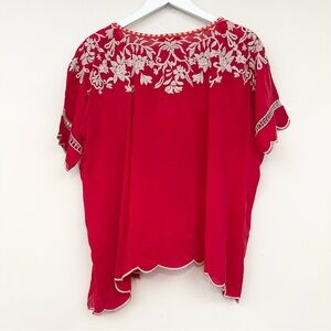 Johnny Was Cedella Embroidered Scalloped Hem Blouse