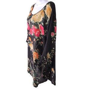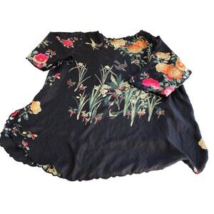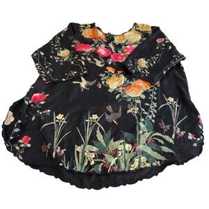 Johnny Was Charlotte Rose Scalloped Silk Tunic Size ? Women Boho V Neck Birds