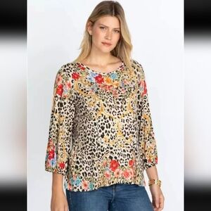 Johnny Was Cheetah Puff Sleeve Top, Size XL