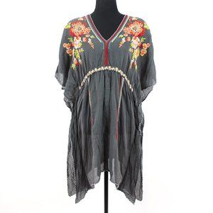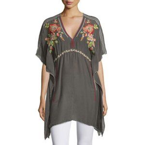 Johnny Was Cherise V-Neck Embroidered Poncho Top Dark Grey Multicolor Floral Embroidered Tunic