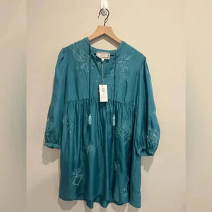 Johnny Was Christy Silk Embroidered Mini Dress Size S NWT