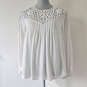 Johnny Was Cielito Modal Blouse Crochette Detsils Biege Ivory Color Size Small
