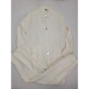 Johnny Was Collection Linen Set SZ Small Blouse And Pants Set Ivory Lagenlook