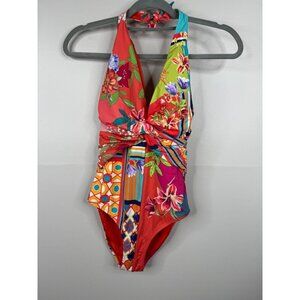 Johnny Was Color Twist One Piece Floral Suit Swimwear Size S NEW