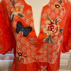 Johnny Was Coral Embroidered Boho Blouse Sz L