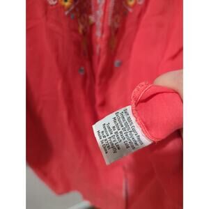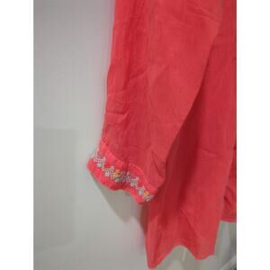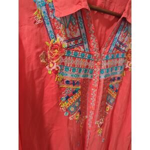 Johnny Was Coral Embroidered Button Front Tunic Top