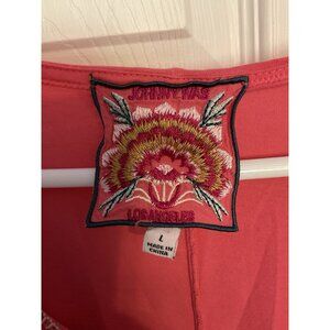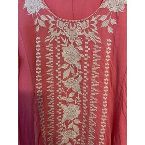 Johnny Was Coral Pink Embroidered Tunic Top Dress Blouse Boho Size Large