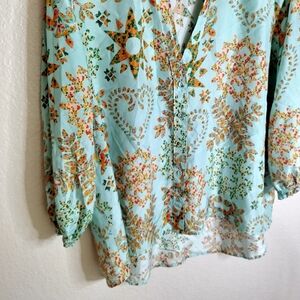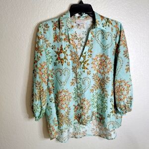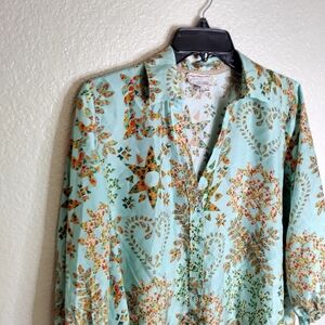 Johnny Was Corbetta Smocked Silk Printed Boho Shirt Blouse Multi Sz S