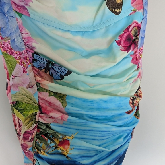Johnny Was Costa Azul Bandeau One Piece Swimsuit Size XS Extra Small Butterflies