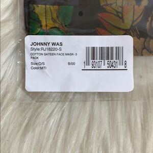 This is a new in package Johnny Was face mask. These are lined in a striped fabric, double layered with a top slit for adding a filter if desired. Print floral, mixed, in the signature Johnny Was fabric mix designs.