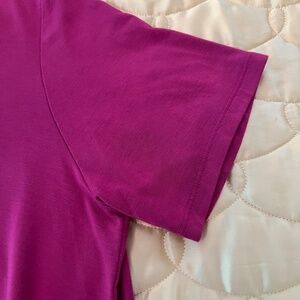This solid fuchsia swing top is made from bamboo viscose and has 5% spandex so it is extremely soft and comfortable. It would look great with a scarf or a statement necklace. It measures 19" from pit to pit and 25" from shoulder to hem. It has never been worn. There are no tags because I cut them off in Florida and am now in NY.